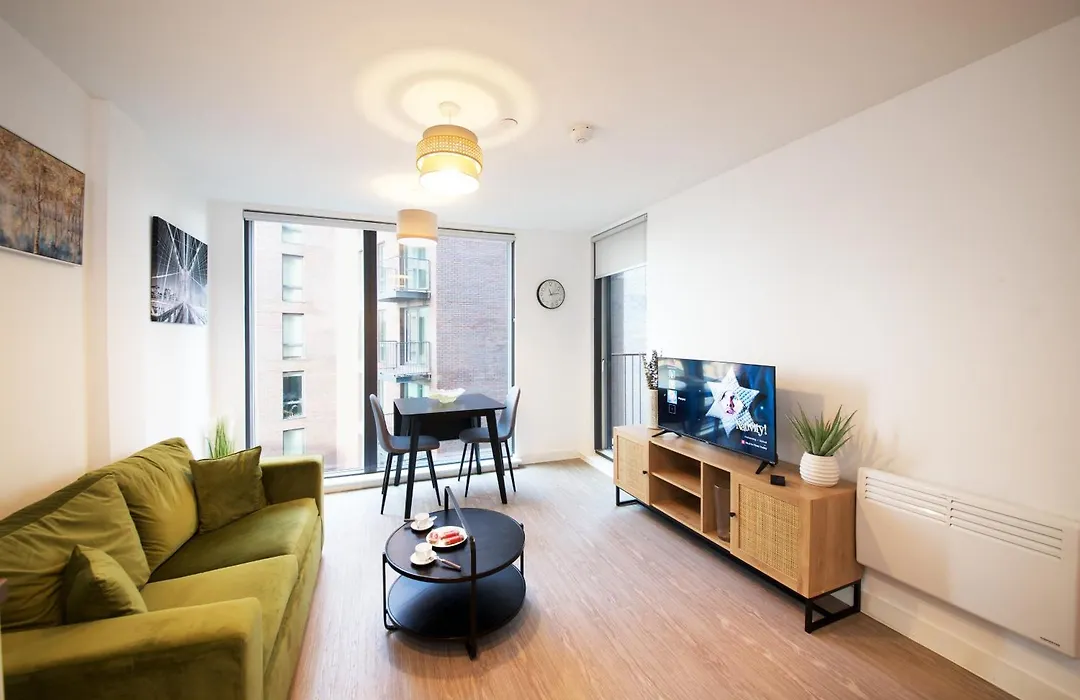 Modern 1-Bed Retreat Near Spinningfields, Arndale, Mediacityuk, Etihad & Old Trafford, Sleeps 4, Nespresso Machine, Balcony, Gym, Netflix, Perfect For Long-Term & Short-Term Professionals & Getaways Манчестер